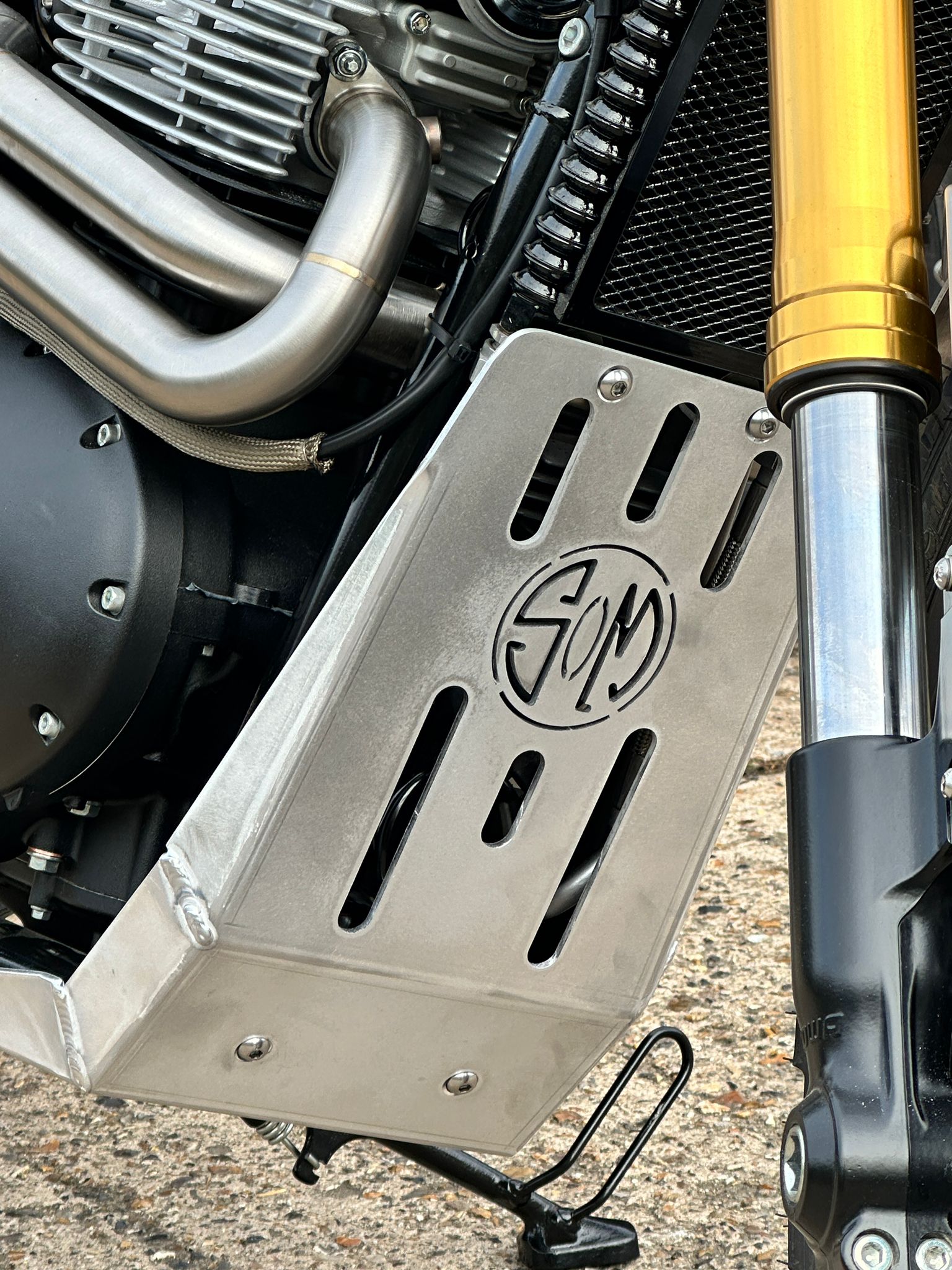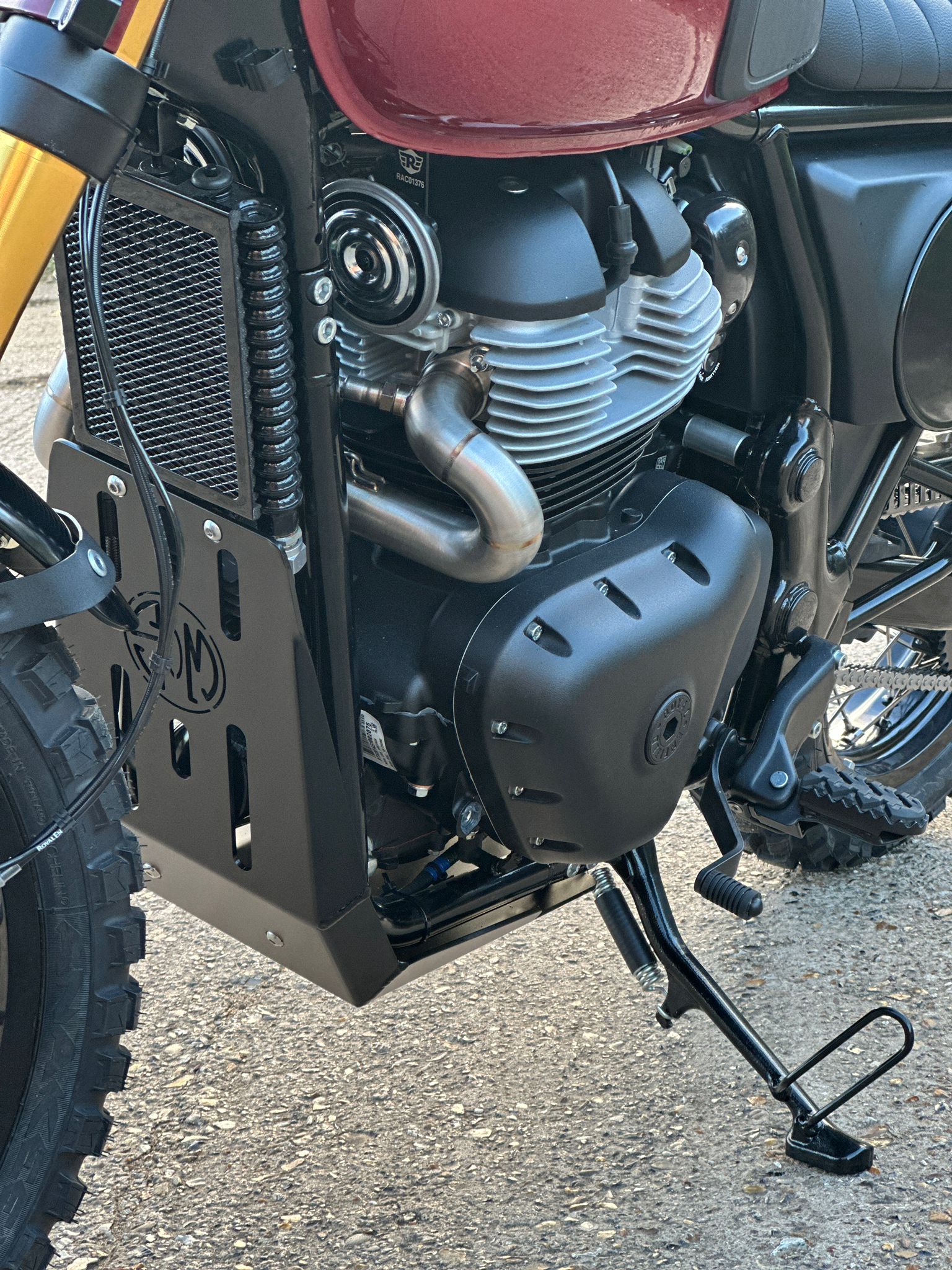 Designed & machined in house, our new aluminium sump guard fits the Interceptor, Bear & Continental and is available in aluminium finish or black powder coated. It adds protection to the engine and lower frame rails and offers protection to the engine from debris off the front tyre.